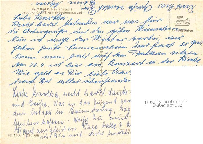 72831913 Bad Orb Leopold Koch Thermal Bewegungsbad postalisch nicht gelaufen Erhaltung siehe scans [FriedD77] KatCode: 11110006435001