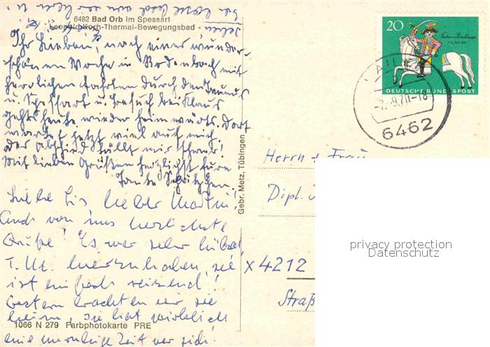 72719320 alte Postkarte Bad Orb Leopold Koch Thermal Bewegungsbad postalisch gelaufen Erhaltung siehe scans [FriedD77] KatCode: 11110006435001