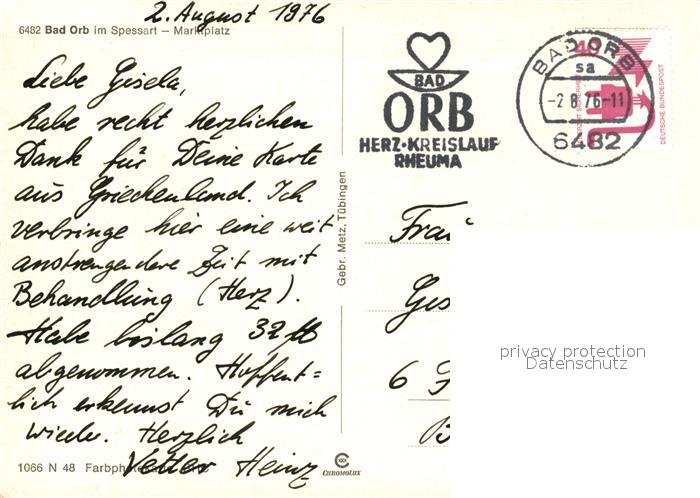 73122357 alte Postkarte Bad Orb Marktplatz postalisch gelaufen Erhaltung siehe scans [KathaD81] KatCode: 11110006435001