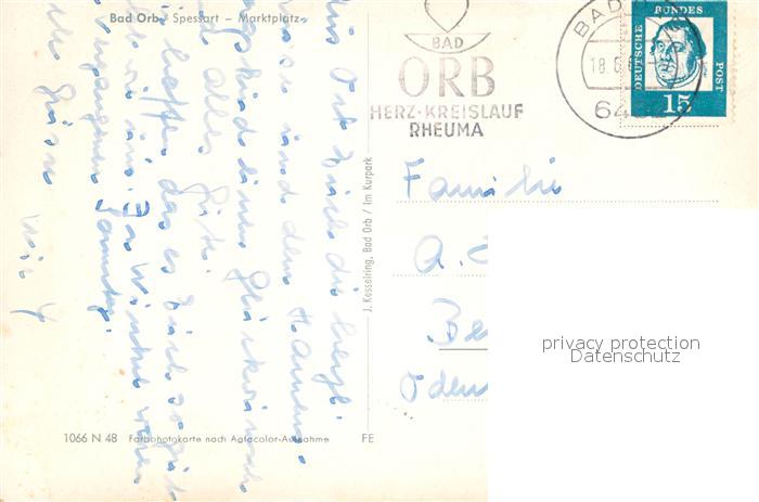 72993794 alte Postkarte Bad Orb Marktplatz postalisch gelaufen Erhaltung siehe scans [AndreD76] KatCode: 11110006435001