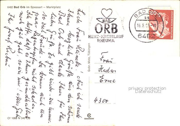 72527233 alte Postkarte Bad Orb Marktplatz Brunnen Hotel Weisses Ross postalisch gelaufen Erhaltung siehe scans KatCode: 11110006435001