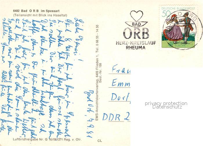 73655346 alte Postkarte Bad Orb mit Blick ins Haseltal Fliegeraufnahme postalisch gelaufen Erhaltung siehe scans [FriedD77] KatCode: 11110006435001