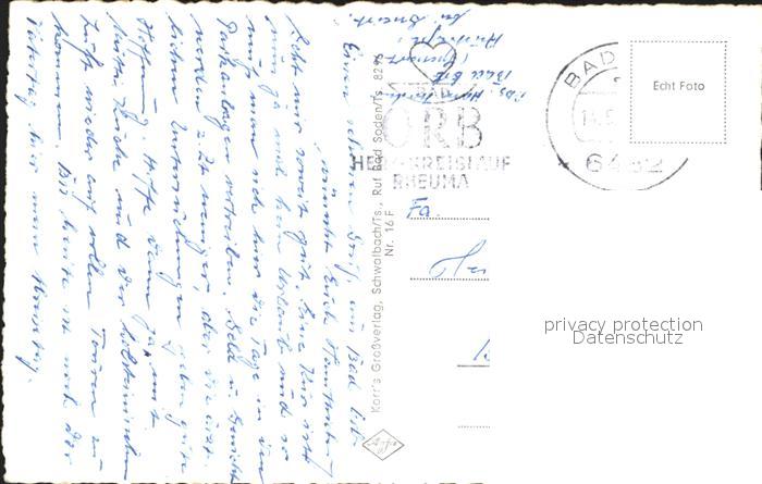 72197790 alte Postkarte Bad Orb Muehlchen Bahnhof Fontaene Annenhof Sanatorium Kueppelsmuehle postalisch gelaufen Erhaltung siehe scans KatCode: 11110006435001