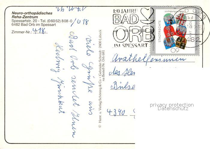73017920 alte Postkarte Bad Orb Neuro orthopaed Reha Zentrum postalisch gelaufen Erhaltung siehe scans [WerneD78] KatCode: 11110006435001