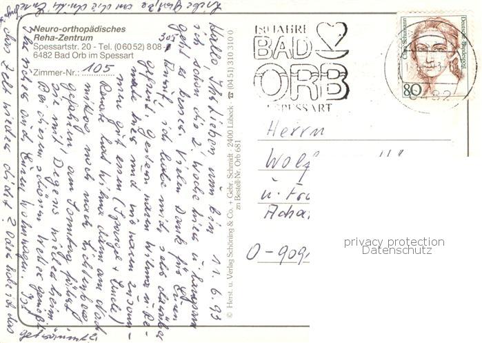 73755410 alte Postkarte Bad Orb Neuro orthopaedisches Reha Zentrum postalisch gelaufen Erhaltung siehe scans [FriedD77] KatCode: 11110006435001