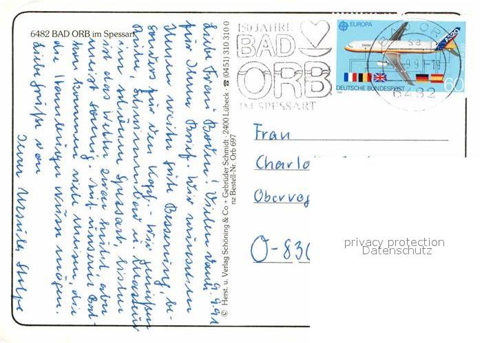 72631416 alte Postkarte Bad Orb Obertor Solplatz Saline Kirchgasse Kleinstes-Haus postalisch gelaufen Erhaltung siehe scans [LiesaD40] KatCode: 11110006435001