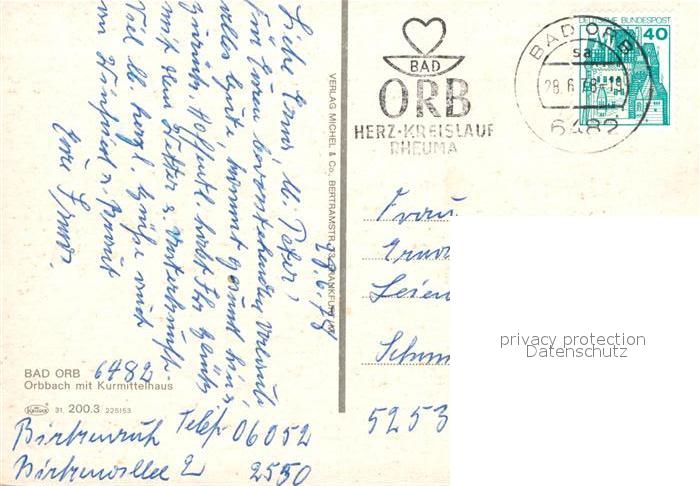 72993679 alte Postkarte Bad Orb Orbbach mit Kurmittelhaus postalisch gelaufen Erhaltung siehe scans [AndreD76] KatCode: 11110006435001