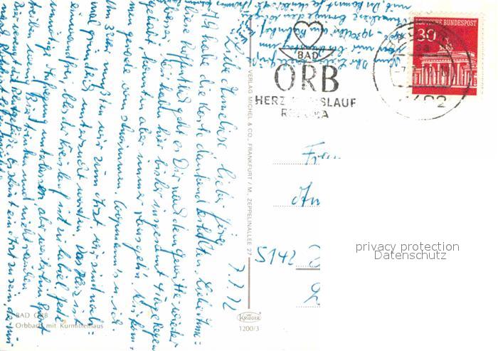 72853830 alte Postkarte Bad Orb Orblauf Kurmittelhaus postalisch gelaufen Erhaltung siehe scans [AndreD76] KatCode: 11110006435001
