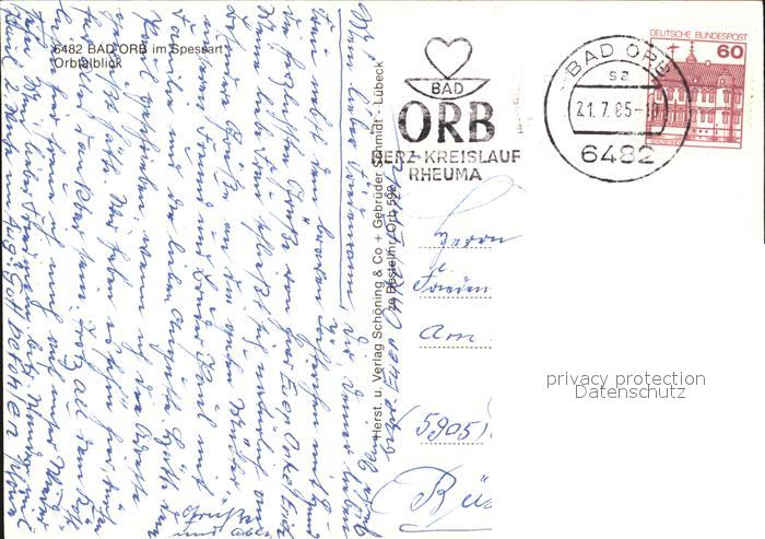 72505909 alte Postkarte Bad Orb Orbtalblick postalisch gelaufen Erhaltung siehe scans KatCode: 11110006435001