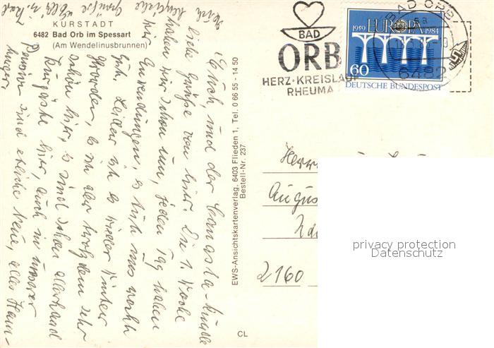 73686211 alte Postkarte Bad Orb Ortsansicht mit Wendelinusbrunnen postalisch gelaufen Erhaltung siehe scans [WerneD78] KatCode: 11110006435001