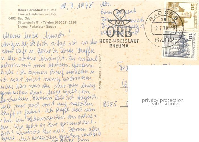 73634051 alte Postkarte Bad Orb Panorama mit Haus Fernblick mit Cafe postalisch gelaufen Erhaltung siehe scans [FriedD77] KatCode: 11110006435001