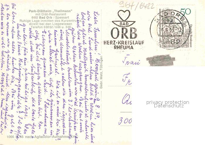 72859965 alte Postkarte Bad Orb Park-Diaetheim Theilmann postalisch gelaufen Erhaltung siehe scans [LiesaD40] KatCode: 11110006435001