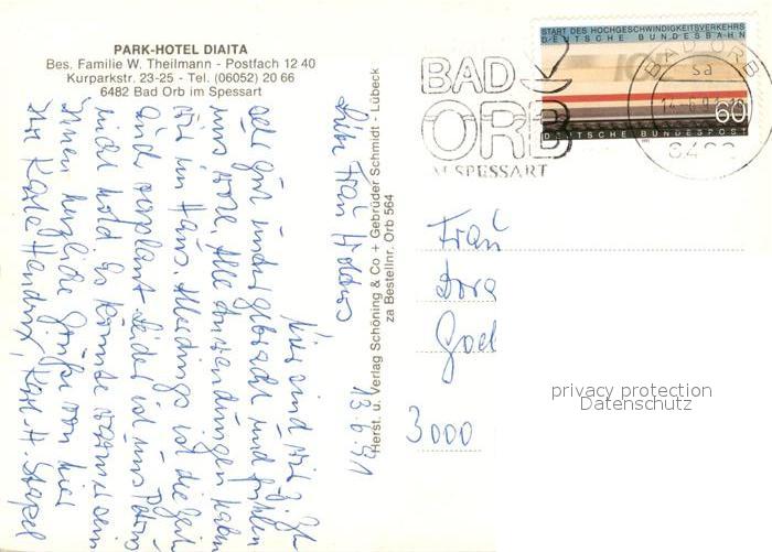 73174632 alte Postkarte Bad Orb Park-Hotel Diaita postalisch gelaufen Erhaltung siehe scans [PaolaD17] KatCode: 11110006435001