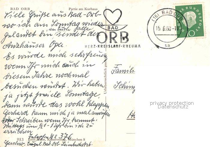 72801966 alte Postkarte Bad Orb Partie am Kurhaus postalisch gelaufen Erhaltung siehe scans [FriedD77] KatCode: 11110006435001