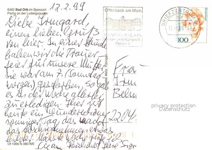 72827150 alte Postkarte Bad Orb Partie an der Ludwigsquelle Brunnen postalisch gelaufen Erhaltung siehe scans [FriedD77] KatCode: 11110006435001