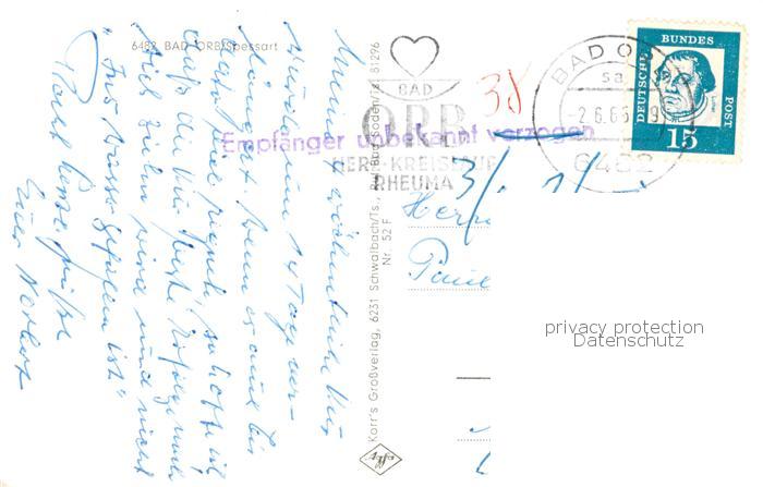 73805312 alte Postkarte Bad Orb Partie mit Spessartsanatorium postalisch gelaufen Erhaltung siehe scans [WerneD78] KatCode: 11110006435001