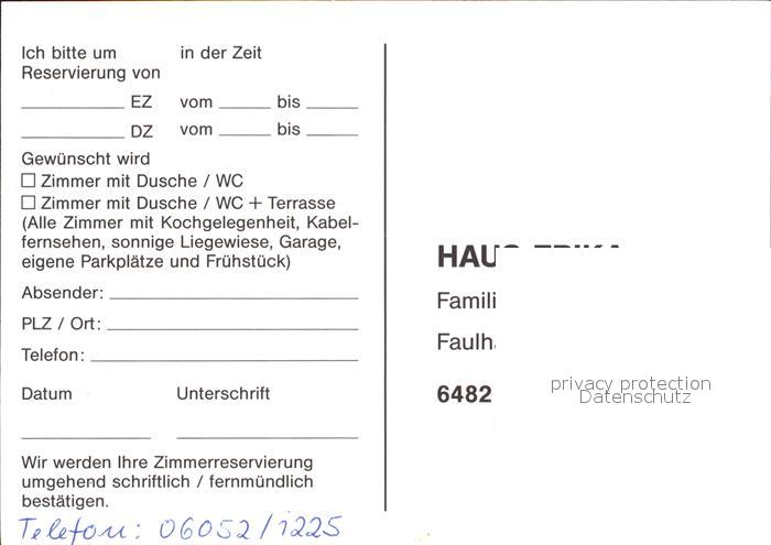 72551527 Bad Orb Pension Haus Erika postalisch nicht gelaufen Werbekarte (keine Postkarte) Erhaltung siehe scans [LiesaD40] KatCode: 11110006435001