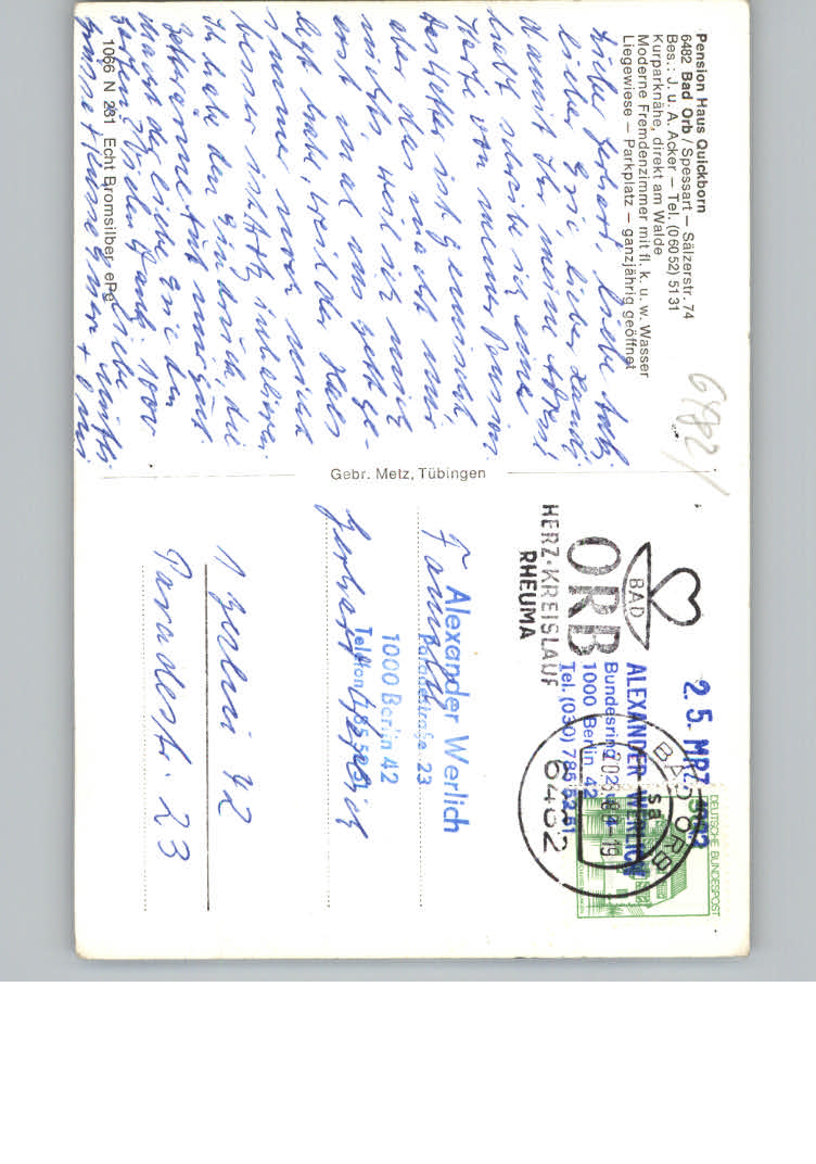 31146239 Bad Orb Pension Haus Quickborn postalisch nicht gelaufen KatCode: