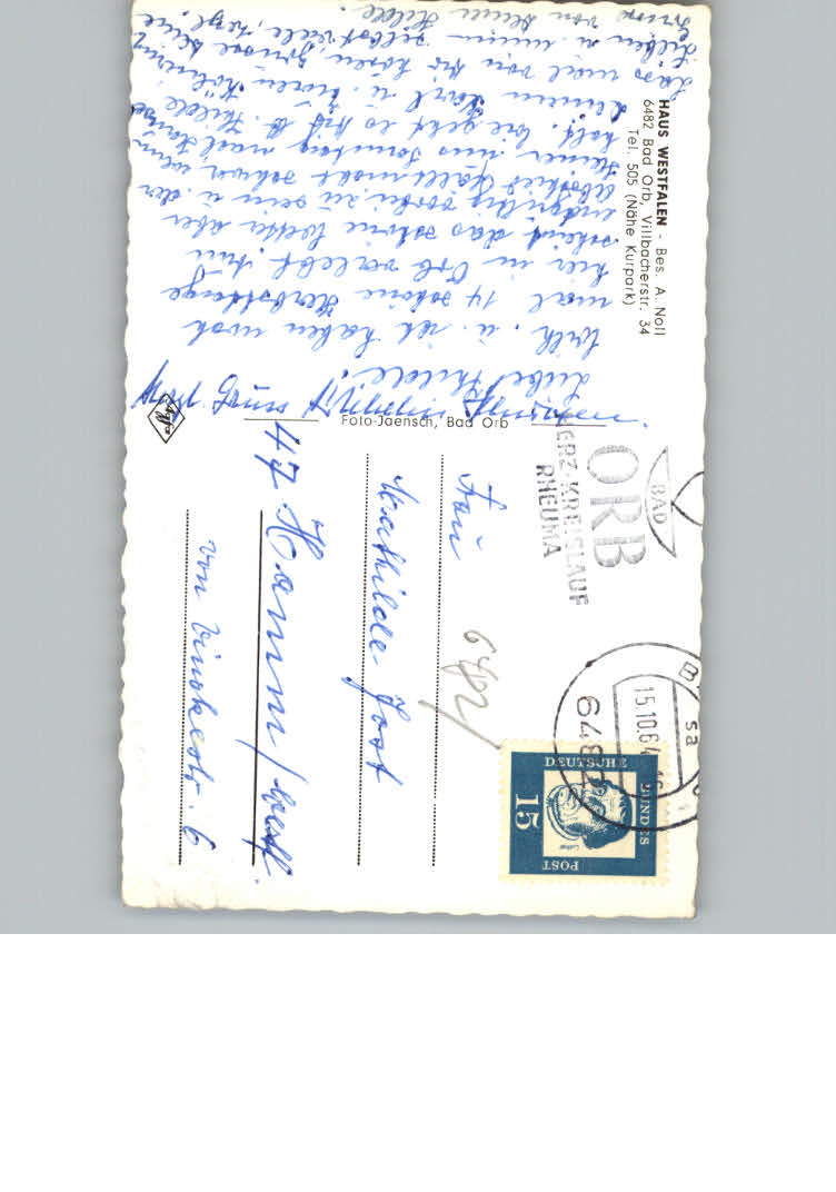 31145389 Bad Orb Pension Haus Westfalen postalisch nicht gelaufen KatCode: