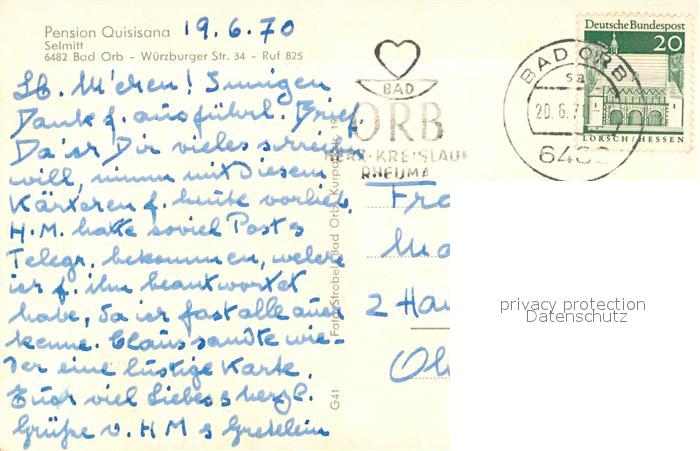 73248508 alte Postkarte Bad Orb Pension Quisisana postalisch gelaufen Erhaltung siehe scans [WerneD78] KatCode: 11110006435001