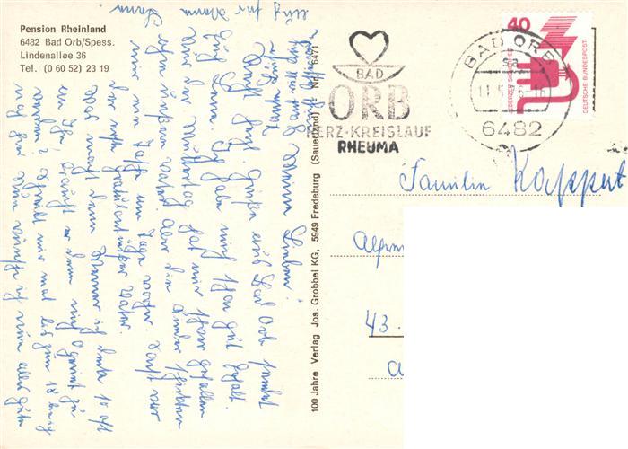 73883976 alte Postkarte Bad Orb Pension Rheinland Illustration postalisch gelaufen Erhaltung siehe scans [WerneD78] KatCode: 11110006435001