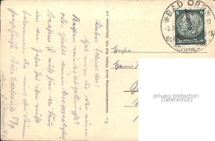 72296525 alte Postkarte Bad Orb Postamt Eingang Kurpark Zeichnung postalisch gelaufen Erhaltung siehe scans KatCode: 11110006435001