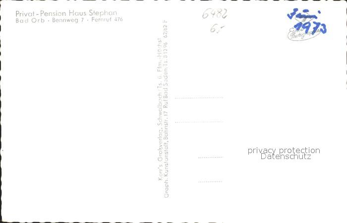 72130548 Bad Orb Privat Pension Haus Stephan postalisch nicht gelaufen Erhaltung siehe scans KatCode: 11110006435001