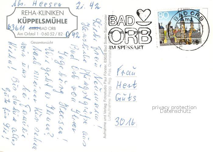 73008354 alte Postkarte Bad Orb Reha Kliniken Kueppelsmuehle Fliegeraufnahme postalisch gelaufen Erhaltung siehe scans [WerneD78] KatCode: 11110006435001