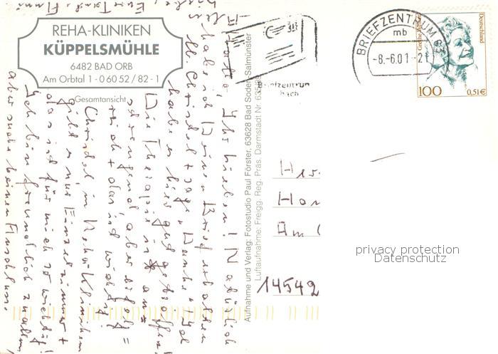73775951 alte Postkarte Bad Orb Reha Kliniken Kueppelsmuehle postalisch gelaufen Fliegeraufnahme Erhaltung siehe scans [WerneD78] KatCode: 11110006435001