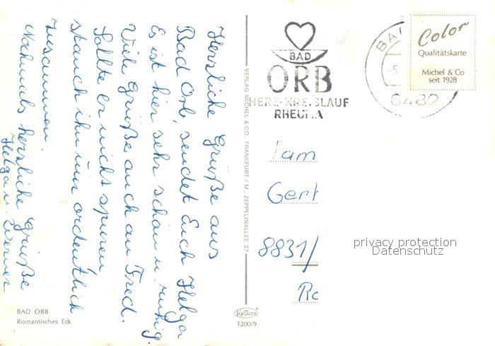 72993701 Bad Orb Romantisches Eck postalisch nicht gelaufen Erhaltung siehe scans [AndreD76] KatCode: 11110006435001