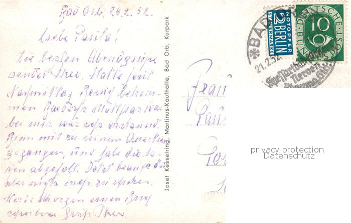 73803308 alte Postkarte Bad Orb Rotahornallee mit Villenviertel postalisch gelaufen Erhaltung siehe scans [FriedD77] KatCode: 11110006435001
