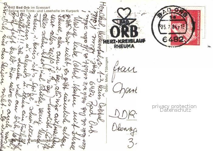 72630162 alte Postkarte Bad Orb Saline Kurpark postalisch gelaufen Erhaltung siehe scans [LiesaD40] KatCode: 11110006435001