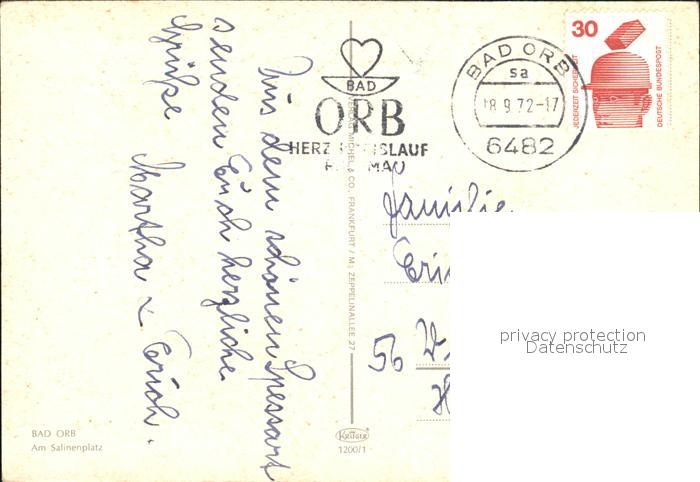 72527243 alte Postkarte Bad Orb Salinenplatz postalisch gelaufen Erhaltung siehe scans KatCode: 11110006435001
