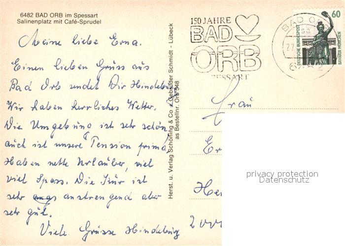 73059198 alte Postkarte Bad Orb Salinenplatz mit Cafe Sprudel postalisch gelaufen Erhaltung siehe scans [WerneD78] KatCode: 11110006435001