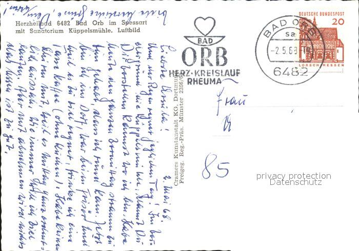 72580363 alte Postkarte Bad Orb Sanatorium Kueppelsmuehle Luftaufnahme postalisch gelaufen Erhaltung siehe scans [KathaD79] KatCode: 11110006435001
