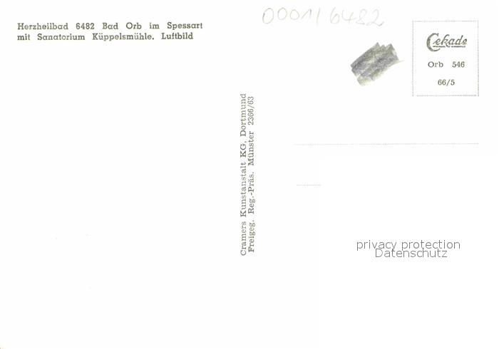 72798705 Bad Orb Sanatorium Kueppelsmuehle Spessart Fliegeraufnahme postalisch nicht gelaufen Erhaltung siehe scans [FriedD77] KatCode: 11110006435001
