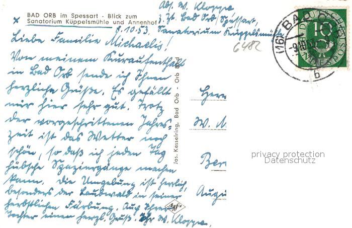 43350370 alte Postkarte Bad Orb Sanatorium Kueppelsmuehle und Annenhof postalisch gelaufen Erhaltung siehe scans [FriedD77] KatCode: 11110006435001