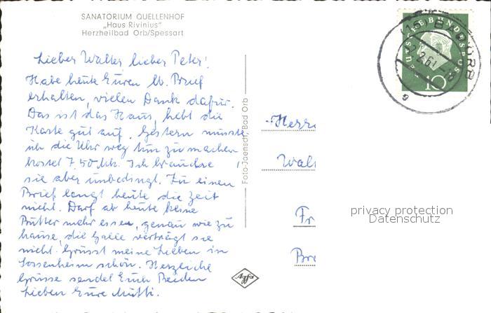 72130641 alte Postkarte Bad Orb Sanatorium Quellenhof Haus Rivinius postalisch gelaufen Erhaltung siehe scans KatCode: 11110006435001