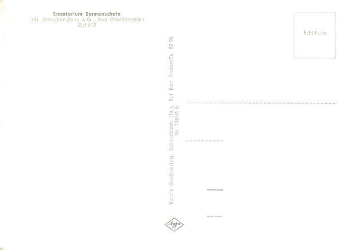 73880113 Bad Orb Sanatorium Sonnenschein postalisch nicht gelaufen Erhaltung siehe scans [FriedD77] KatCode: 11110006435001