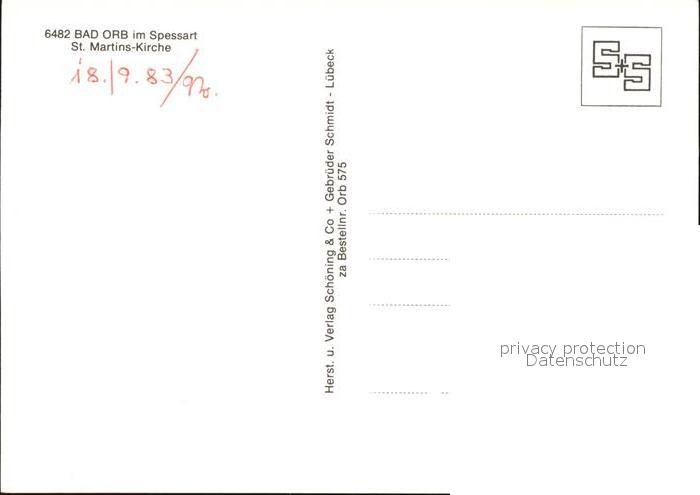 72520162 Bad Orb Sankt Martinskirche postalisch nicht gelaufen Erhaltung siehe scans KatCode: 11110006435001