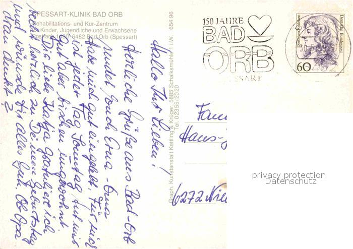 72878765 alte Postkarte Bad Orb Spessart Klinik Stadtpanorama postalisch gelaufen Erhaltung siehe scans [FriedD77] KatCode: 11110006435001