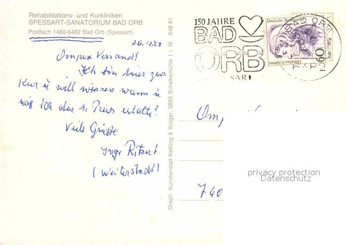 72724968 alte Postkarte Bad Orb Spessart-Sanatorium postalisch gelaufen Erhaltung siehe scans [LiesaD40] KatCode: 11110006435001