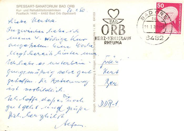 73885125 alte Postkarte Bad Orb Spessart Sanatorium Kur und Rehakliniken Zimmer postalisch gelaufen Erhaltung siehe scans [WerneD78] KatCode: 11110006435001
