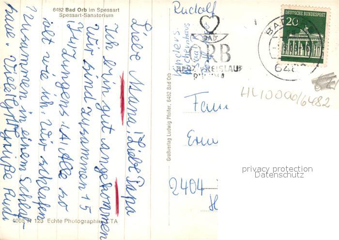 73282594 alte Postkarte Bad Orb Spessart-Sanatorium postalisch gelaufen Erhaltung siehe scans [NatalD47] KatCode: 11110006435001