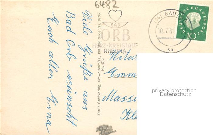 73706341 alte Postkarte Bad Orb Spessartsanatorium postalisch gelaufen Erhaltung siehe scans [LiesaD40] KatCode: 11110006435001