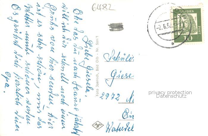 73698173 alte Postkarte Bad Orb Spessartsanatorium Gaestehaus Speisesaal Aufenthaltsraum Park Brunnen postalisch gelaufen Erhaltung siehe scans [FriedD77] KatCode: 11110006435001