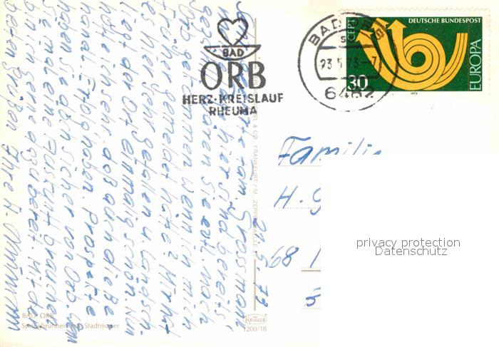 72740963 alte Postkarte Bad Orb Springbrunnen mit Stadtmauer postalisch gelaufen Erhaltung siehe scans [FriedD77] KatCode: 11110006435001
