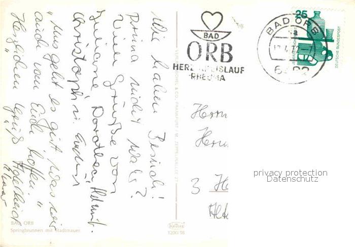 72867335 alte Postkarte Bad Orb Springbrunnen Stadtmauer postalisch gelaufen Erhaltung siehe scans [NatalD47] KatCode: 11110006435001