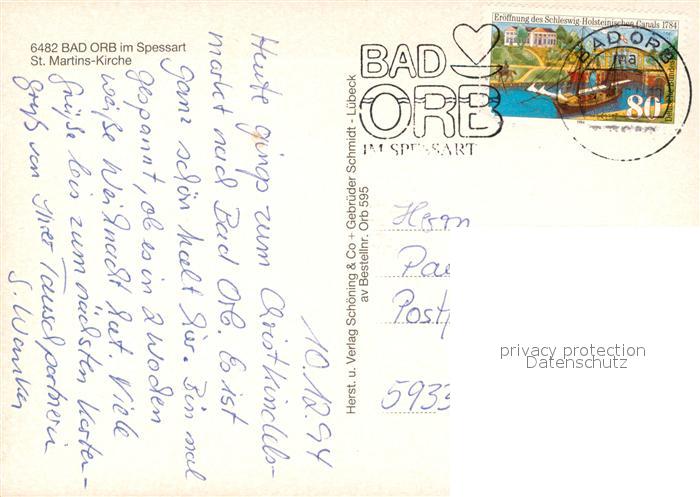 73203901 alte Postkarte Bad Orb St. Martins-Kirche postalisch gelaufen Erhaltung siehe scans [PaolaD17] KatCode: 11110006435001