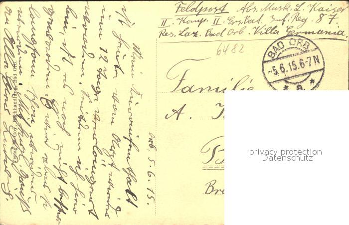 31717265 alte Postkarte Bad Orb Villa Friede postalisch gelaufen Erhaltung siehe scans KatCode: 11110006435001